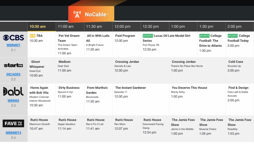 Atlanta Tv Guide No Cable. Use the NoCable TV listings guide as a schedule of what TV shows are on now and tonight for all local broadcast channels in Atlanta GA 30303. Our OTA TV guide lists the television shows.